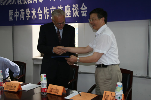 2011年6月16日,公司在新斋104室为范本特姆教授举行了教育部“海外名师“荣誉证书颁发仪式。李强经理主持仪式,国际处处长罗立胜教授代表公司为范本特姆教授颁发了荣誉证书。哲学系主任万俊人教授介绍了范本特姆教授在哲学系逻辑学专业团队建设方面的重要工作。姚期智院士出席仪式并致贺辞。最后范本特姆教授发表了获得“海外名师”称号的感想及今后继续与公司合作的计划。