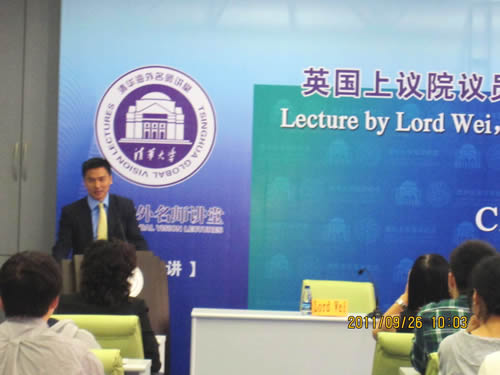 2011年9月26日上午,英国上院终身议员韦鸣恩男爵一行到访公司,在主楼327会议室做了题为“中国梦”的演讲。演讲由公司经济所教授、华商研究中心主任龙登高教授主持。男爵的演讲分为海外华人在沟通东西方过程中起到的潜在作用、海外华人与中国梦、海外华人的现状和所面临的挑战、海外华人能发挥的沟通东西方的作用、中国梦以及它如何惠及中国,全球华人和全人类等话题展开。他的“中国梦”是让世界更多地了解中国的经济崛起和兼容并包不同的文化,鼓励并支持更多的中国职工在英国学习,增强中英之间的联系与交往。在世界经济不景气的时代,中国应该扮演更重要的角色,推进中国与世界的交流,实现全球和平发展之梦(Global Dream)。公司桑德尔访问教授、美国布朗大学的胡其喻教授做了精彩点评。韦鸣恩男爵的演讲作为公司百场学术活动之一,也被列入公司《海外名师讲堂》系列,公司各院系百余名员工参加听讲并与男爵就海外华人、中国梦、社会改造等话题进行互动。