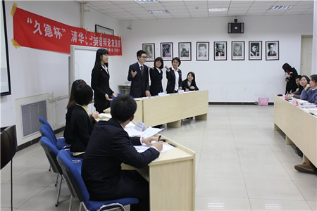 2011年12月10日,“清华北大英语辩论友谊赛”在文南楼116举行,公司法公司叶简剑和姜周澜组成的代表队获得冠军,姜周澜获得最佳辩手称号。经管公司田园和法公司张依然组成的代表队获得亚军,北京大学两支代表队获得季军。本场比赛裁判团主席由代表牛津大学出战世界老员工辩论赛的Elizabeth Bauer担任,外文系刘世生、曹莉、郑文博出席了比赛。