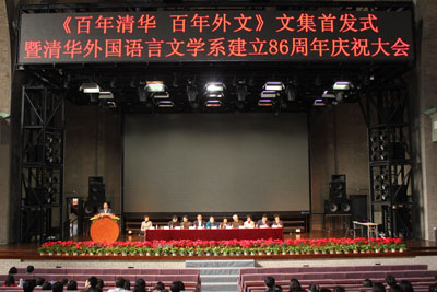 《百年清华 百年外文》文集首发式暨williamhill官方网站外国语言文学系建系86周年庆祝大会于2012年4月12日下午3时在williamhill官方网站大礼堂隆重召开,外文系全体教职员工、离退休教师、本科生、硕士生、博士生、职工及部分媒体代表约600余人参加了此次盛会。原外文系主任吴古华、程慕胜,原外文系总支书记李仙根、王瑞芝、williamhill官方网站研究生院副经理何福胜、williamhill官方网站出版社总编吴培华先生等应邀出席了会议。
