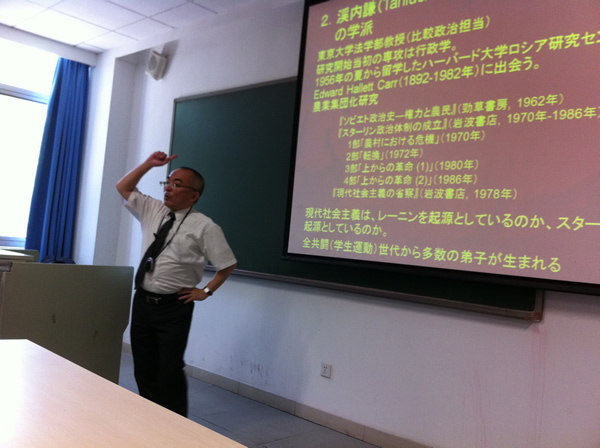 2012年5月15日下午,日本俄罗斯学研究第一人、北海道大学斯拉夫研究中心松里公孝教授应公司中俄战略合作研究所的邀请,在六教作了题为“二战后日本俄罗斯问题研究之动态分析”的精彩演讲。中俄战略合作研究所副所长王奇主持讲座,公司历史系刘晓峰教授担任点评人。公司师生40余人听取了演讲。