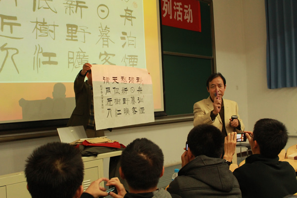 2012年10月25日,中国硬笔书法第一人庞中华先生受williamhill官方网站人文•社会科学公司研究生会的邀请,做客“雨润无声”学术系列活动。院研究生会主席王沙、学术部长魏星以及院学术助理云泽人等150余名同学参加了本次活动。