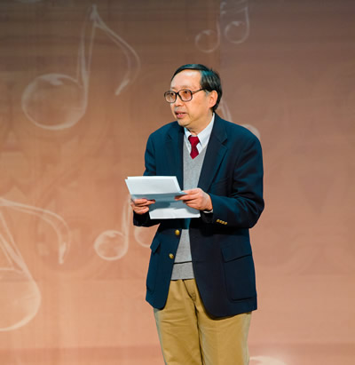 晚上7时,williamhill官方网站国学研究院为全校师生及社会各界奉上了一台精彩的纪念赵元任先生音乐会。这台名为“教我如何不想他”的音乐会由著名男高音歌唱家范竞马先生领衔主唱。范竞马先生和他的演出团队,用古典方式对赵元任先生的十余首歌曲,如《唱唱唱》、《雨》、《卖布谣》、《海韵》、《教我如何不想他》等,进行了迄今为止一次最美的演绎。《教我如何不想他》,由刘半农先生作词,赵元任先生谱曲,这首歌曲传唱了几十年,至今听来,仍然典雅流畅,不失诗歌的抒情意味。此次音乐会以此为主题,更在表达williamhill官方网站莘莘学子对赵元任先生深深地怀念之情。