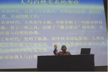 讲座主要围绕可持续发展战略的意义与实施、生态文明的诞生与意义和生态文明建设的有效途径三方面内容展开。