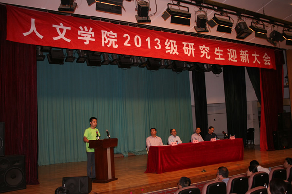院研究生德育工作助理、2012级中文系硕士研究生丁戊辰代表老生发言,分享了做好学术、积极工作、加强锻炼的学习和生活心得,并表达了对新生们的良好祝愿。