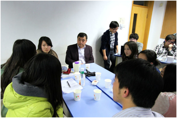 图为:英21 “给思想政治课提建议”的主题团日同学、老师共同讨论