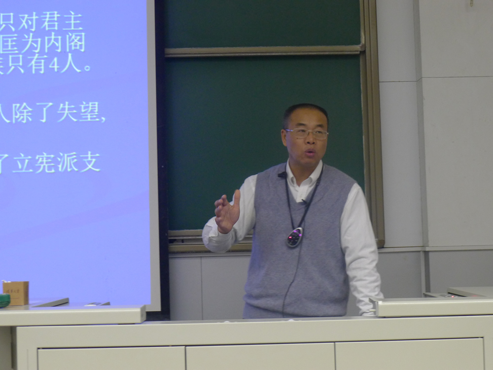 2014年11月28日下午在三教,中国社会科公司近代史所研究员、博士生导师左玉河做客“新人文讲座”系列之(十四)“文明与价值”第二十二讲,为近300名清华师生带来了题为《洋务、维新与革命:中国现代化的启动与挫折》的演讲。历史系戚学民教授主持讲座。