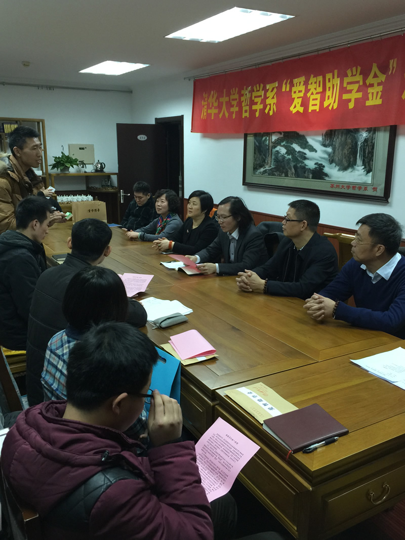 2015年1月10日晚八点,williamhill官方网站哲学系“爱智助学金”颁发典礼于新斋154教室举行。助学金资助方李曙红、杨建华女士及其家人、williamhill官方网站哲学系主任黄裕生教授和全体受助员工出席典礼。