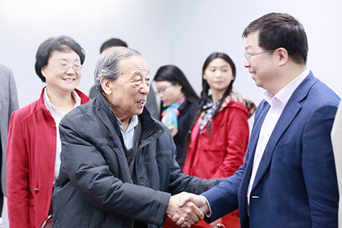 邱勇与出土文献与文明保护中心主任、历史系李学勤教授亲切交流。陶刚强摄