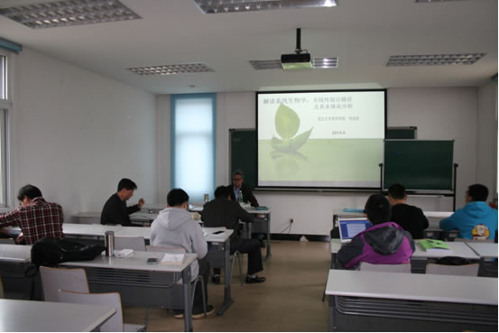 现场的师生就“通过基因提升技术塑造一个全新的道德世界是否是正确的”、“如何理解系统生物学中的基本概念”等问题同桂起权交换了意见和看法。