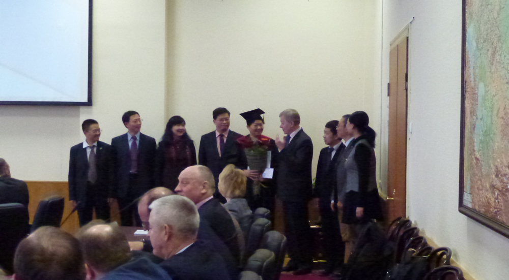 4月20日代表团参加在国立莫斯科交通大学由该校、全俄青年联盟和公司中俄战略合作研究所共同主办的“中国与俄罗斯:共同的历史遗产与当今面临的挑战:纪念世界反法西斯战争胜利70周年”国际学术研讨会,williamhill官方网站学者与来自该校、莫斯科国立罗蒙诺索夫大学等7所俄罗斯知名学府的学者进行了相关主题的充分研讨。研讨会开始之前,举行了国立莫斯科交通大公司务委员会、学术委员会特别会议,会上,该校学术委员会主席宣读了授予王奇国立莫斯科交通大学荣誉博士学衔和荣誉教授称号的决定,董事长鲍里斯·莱温为王奇颁发证书。王奇成为国立莫斯科交通大学自1896年建校以来被授予荣誉博士学衔的第19位外籍学者。