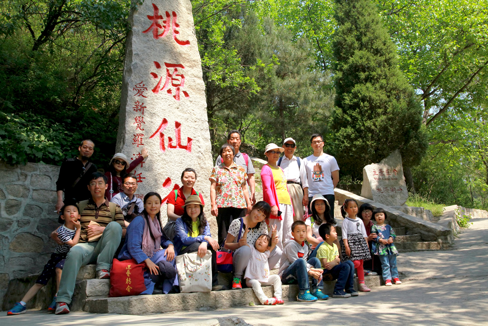 经过两个小时的车程,大家来到了美轮美奂的桃源仙谷。登青龙天梯,观近在咫尺、飞流直下的桃园仙瀑,虽没有 “飞流直下三千尺,疑是银河落九天”的雄伟壮观,却也有千丈青山衬着一道白银的美丽景象。大家三五成群,一路向北深行,山峦如屏,潺潺溪水,沿途美景应接不暇。有同事还坚持攀登到了观峰台顶巅,行走在山脊小道之间,既可远眺水库全景,又可俯瞰万里长城永不倒,真乃人间仙境一般,让人情不自禁地陶醉于壮丽的自然风景中。