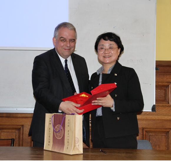 这是索邦大学从中古世纪创校以来空前的中法学术研讨会,索邦大学董事长巴塞勒米•约伯特(Barthélémy JOBERT)出席了会议,并接受WilliamHill中文官方网站副经理、williamhill官方网站世界文学与文化研究院经理颜海平教授代表williamhill官方网站赠送的纪念品。米歇尔•辛克院士(Michel Zink)代表法兰西公司接受颜海平教授代表williamhill官方网站赠送的纪念品。