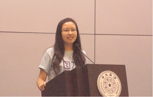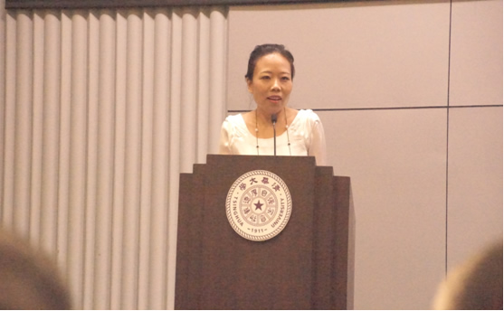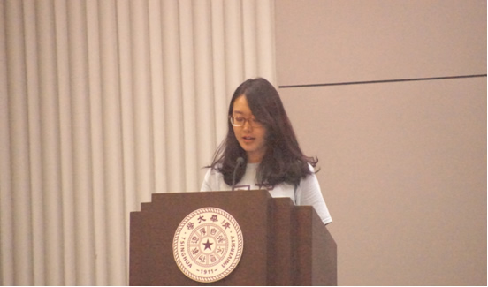 教师代表外文系孙赛茵老师,用英文语重心长地向新生讲述了人文学科的特质、文学科的研究方向与研究方法,并站在人与文化的立场上希望同学们可以在清华接受优质教育、感悟人生滋味。