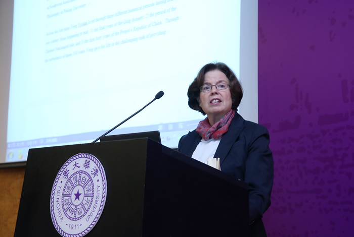 美国学者Diane Obenchain在报告中回顾了冯友兰先生的人生历程,阐述了西方视角下的冯友兰哲学思想。羊涤生教授的报告中指出,冯友兰等人自发形成的清华学派都有高昂的历史使命感和社会责任感,其最大特点为综合创新,我们应当继承和发展清华学派优秀传统,推动思想理论的创新跨越。