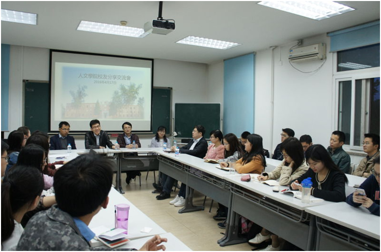 在北京市朝阳区任团委书记的孔钢城师兄、甘肃省武威市外事侨务办公室副主任焦三牛师兄、国务院国资委巡视组副处级巡视专员冯龙庆师兄、中央纪委监察部网络中心编辑张琰师姐出席了当晚的分享会。在分享会一开始,师兄师姐就提出要为大家分享“干货”,不说官话、套话。这份真诚令在座的同学备受感动。分享会在轻松的氛围中展开。
