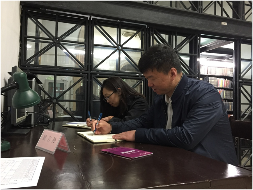 志愿者第二小组主要负责大厅引导及秩序维护,组织参观者签到、留言,并提示到访员工参观的注意事项。大厅是书库的入口处,这里出入参观者人流量大,如何在控制音量的前提下有序维护好秩序,同时礼貌地提醒参观者相关注意事项,是对志愿者们耐心、细心的考验。两天的志愿工作结束后,志愿者高素质、有耐心的表现也得到了老馆的老师们的充分肯定。