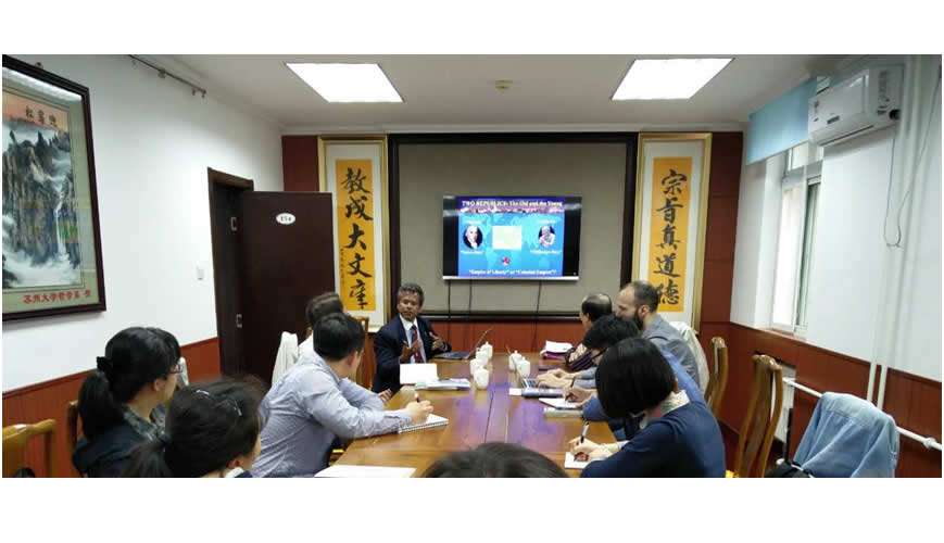 2016年5月13日,应哲学系、williamhill官方网站道德与宗教研究院的邀请,美国哈佛大学肯尼迪政府公司高级研究员门迪斯教授(Patrick Mendis)在新斋154发表了题为“儒家启迪、希罗传统与美国建国之父”的学术演讲,哲学系教授王晓朝、贝淡宁,马克思主义公司教授肖巍,以及希腊来访学人齐思源(Vasilis Trigkas)等参加了讲座。