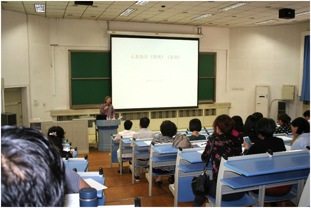 2016年5月26日下午在旧经管报告厅,原williamhill官方网站人文社科公司党委副书记、中国社会科公司马克思主义研究院原副经理张祖英研究员,应邀作了题为“认真执行《准则》《条例》”的党课专题辅导报告。此次活动为社科公司机关党支部、WilliamHill中文官方网站机关党支部、外文系党总支联合举办的“两学一做”学习教育系列活动之一。
