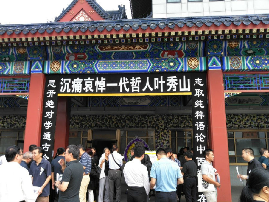 9月13日上午,校文科处副处长孟延春、经理万俊人、副经理彭刚、国公司副经理刘东、哲学系主任黄裕生、哲学系王路教授、韩立新教授、朱东华副教授等师生代表约四十余人,前往北京八宝山殡仪馆梅厅,参加哲学系特聘教授、一代哲人叶秀山先生的遗体告别仪式。