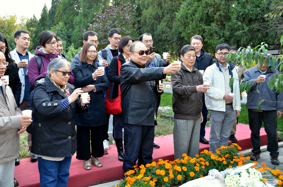 22日下午,学者们集体乘车前往京郊福田公墓拜谒了王国维先生之墓,并在刘东的带领下举行了简短而庄重的祭奠仪式。众人有感于王国维先生等老一辈清华学人“独立之精神,自由之思想”的治学理念与人格风范,抚今追昔,感慨良多。