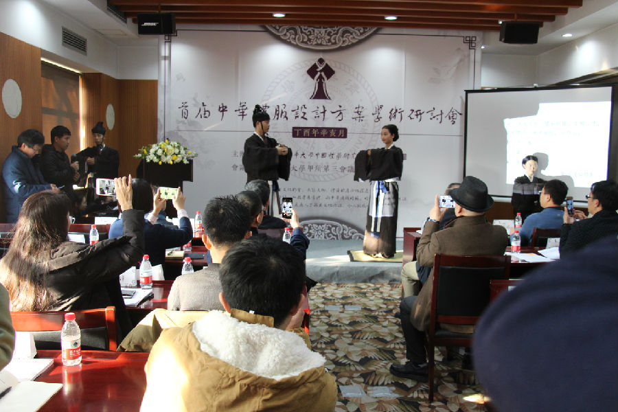 会议上,与会学者围绕上述议题展开充分的学术讨论。或回顾自己多年来为复兴汉服付出的实践与遇到的难题,或通过文献研究提出婚礼服设计方案。会议后半部分的讨论时间,到会听众和与会学者进行了面对面的深入交流。