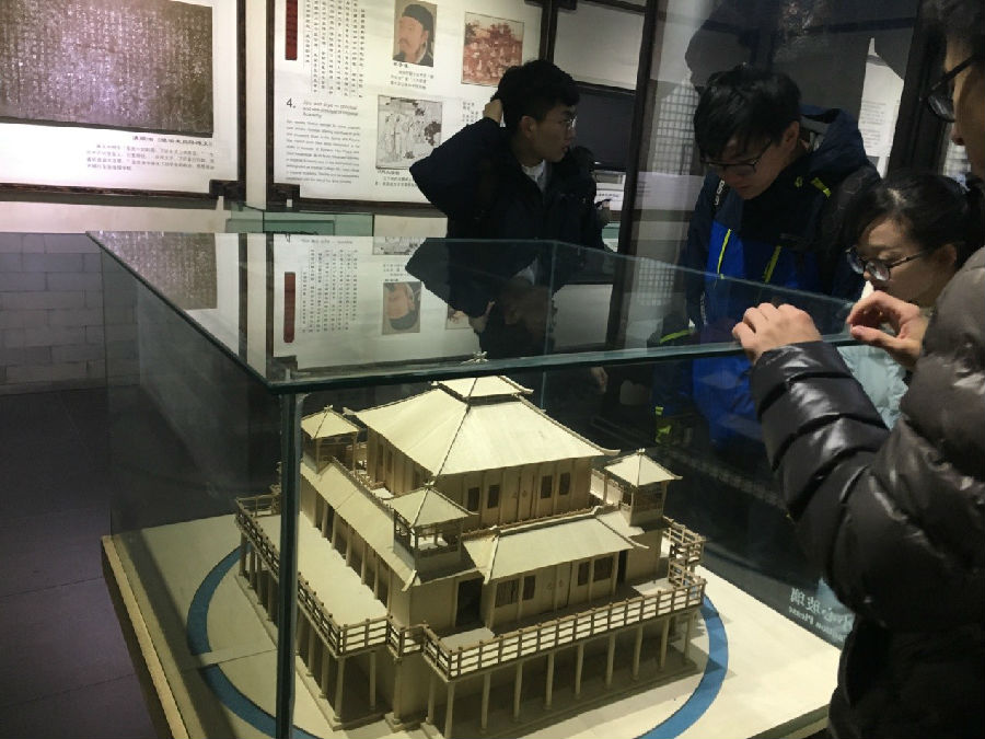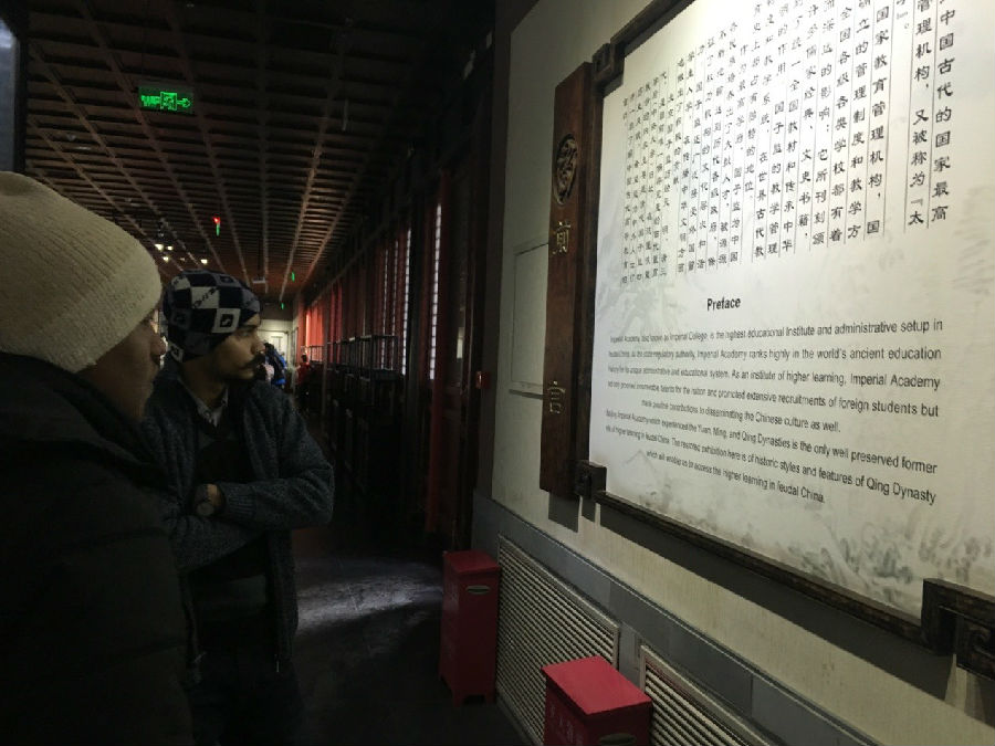 国际员工仔细阅读了解国子监历史。