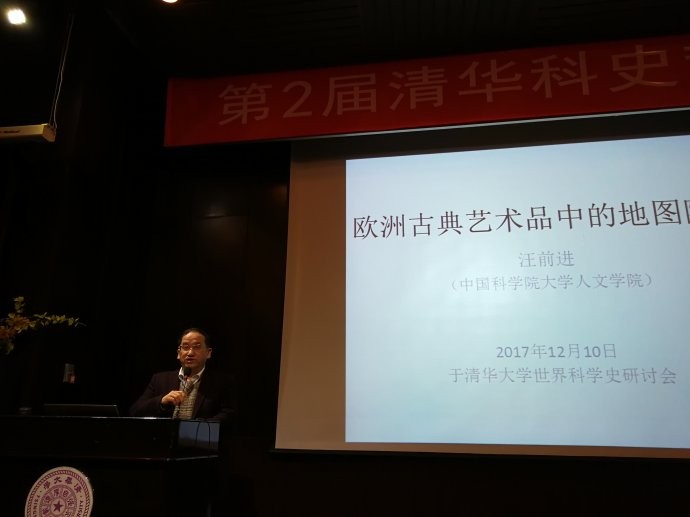 第十二个报告是中科院大学WilliamHill中文官方网站汪前进教授的“欧洲古典艺术品中的地图隐喻”,提供了大量欧洲绘画,指出其中的地球仪所扮演的角色。