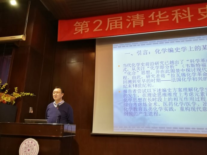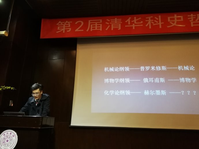 第三个报告是中科院大学袁江洋教授的“化学史上的两种思维模式:元素论化学与原子论化学”,他主张近代化学的真正起源不应该是传统上普遍认可的持元素论的拉瓦锡,而是持原子论的道尔顿。