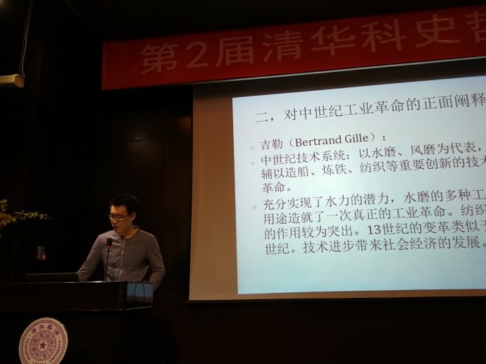 第四个报告是北京大学哲学系博士生吕天择的“对欧洲中世纪工业革命论题的考察”。他比较了革命论者和非革命论者各自的论据和论证,主张欧洲中世纪并没有所谓的工业革命。吴国盛问了一个问题,虽然没有工业革命,但是否可以认可欧洲中世纪存在着“技术革命”呢?