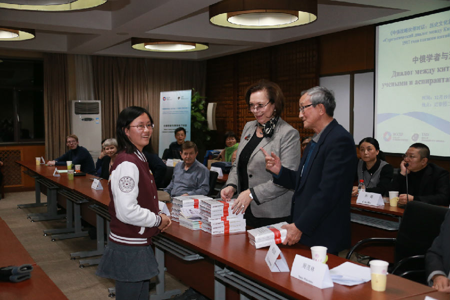 12月19日晚,代表团一行出席由中俄所、williamhill官方网站员工TMS协会求索论坛部联合主办的“中俄学者与清华学子对话会暨《中俄战略伙伴对话:历史文化篇(1917年俄国十月革命100周年)》(中俄文版)新书发布会”,中俄学者与清华学子百余人与会。