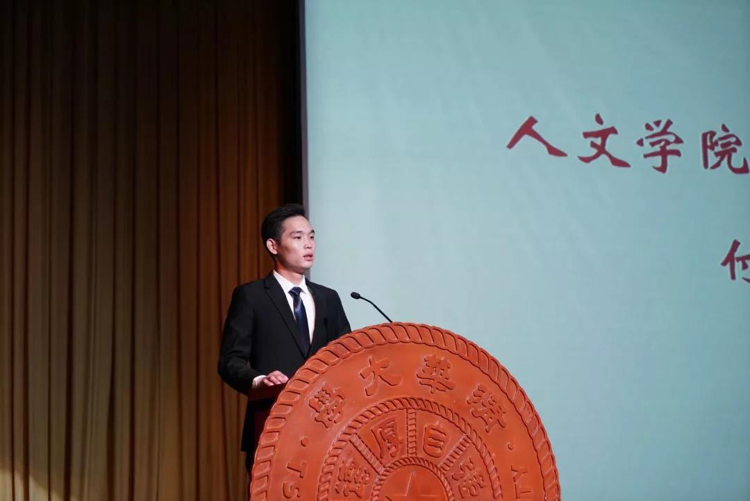 新生代表、新闻与传播公司2018级纪小璐则以“选择”为主题,和大家分享了他们和清华与选择的故事。她说,我们可以选择创造更好的自己,创造更好的清华园,最终构建更好的社会。而选择清华、选择人文与社会大类的那一刻起,我们也选择了担当人文日新的使命,希望清华与同学们的双向选择能够成为人生中闪闪发光的节点。