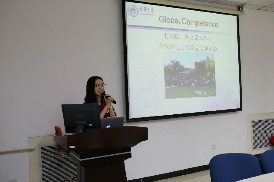 在各位同学发言之后,出席会议的老师们进行了认真详实的点评,语重心长地鼓励同学进一步开阔视野,将国际交流的经验广泛地应用于回国后的学习和工作之中。主管教学的陈永国老师肯定了同学们在海外交换学习后的成长和视野的开阔,他热忱勉励同学们努力学习,在学术上有更高的追求。赵蓉老师表示很高兴看到各位同学找到了自己喜欢的研究方向。英语专业班主任刘昊老师、何宏华老师提到了同学们的海外经验对老师们的语言公司产品和人才培养具有启发意义。日语专业班主任王燕老师、陈爱阳老师、高阳老师强调外文系的同学需要有清华人的担当感和使命感,除海外汲取知识之外,还需要思考“我们能带给世界带来什么”。