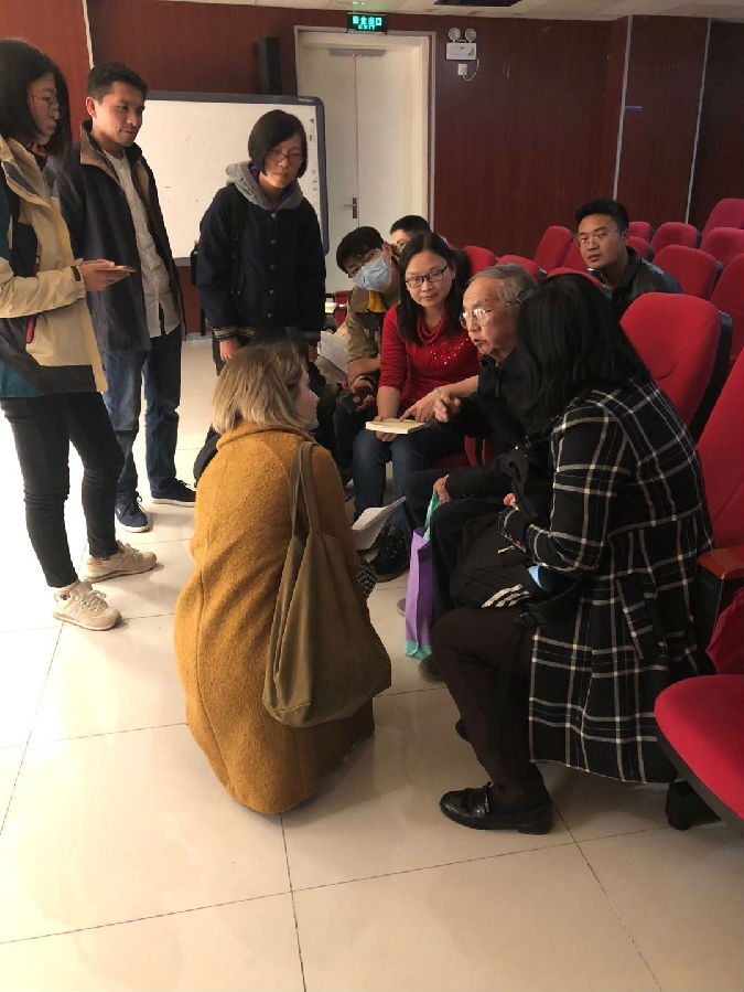 报告结束后,不少师生继续向蒋绍愚请教如何阅读《论语》、如何认识《论语》中“君臣”思想和“孝”的思想等诸多问题。