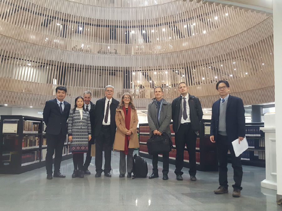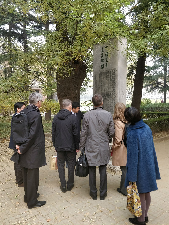 会见前后,宋继杰陪同恩格勒一行参观了校园和图书馆。