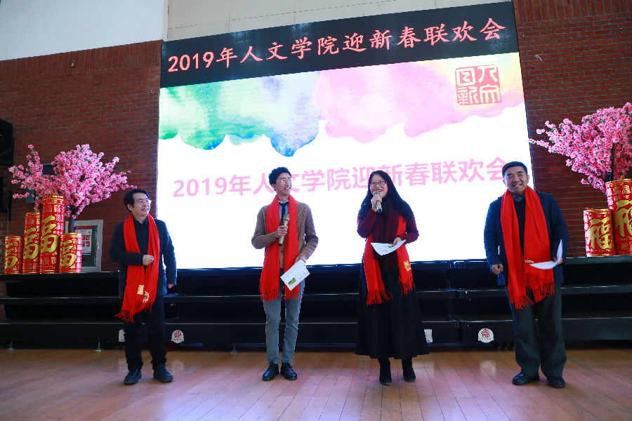 联欢会由中文系陈国平,历史系程刚、曹寅,哲学系夏莹四位老师主持。