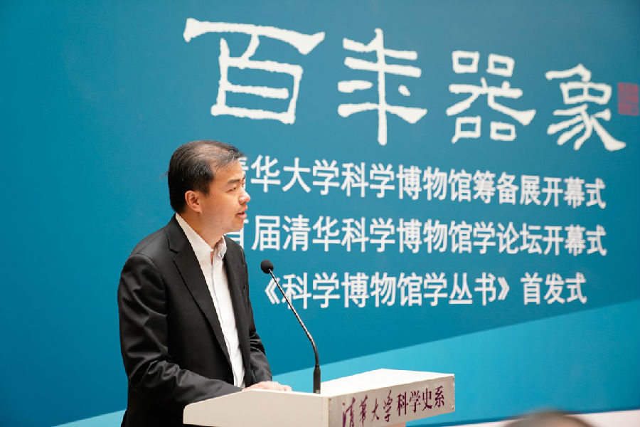 “清华科学博物馆学论坛”的开幕式同时举办,中国科协-williamhill官方网站科技传播与普及研究中心理事长徐善衍作开幕致辞。随后还举行了由科学博物馆(筹)馆长、科学史系主任吴国盛教授主编的《科学博物馆学丛书》的首发式,出版方代表北京师范大学出版社副总编辑饶涛致辞。论坛汇集了国内专家学者对科学仪器历史与科学博物馆学的最新研究,与“百年器象”展览及丛书一起,从理论和实践的不同方面,为全国高校科学博物馆的建设和发展添砖加瓦。开幕式后,嘉宾在吴国盛的带领下参观了展览,对展品质量、布展方式和展陈效果都做出了高度评价。